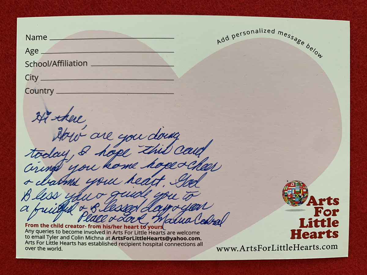 We are a non-profit which uses art to unite volunteers to bring hope, inspiration, joy and courage to hospitalized children worldwide.
