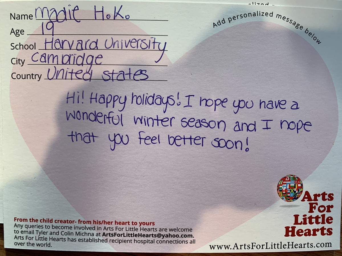 We are a non-profit which uses art to unite volunteers to bring hope, inspiration, joy and courage to hospitalized children worldwide.